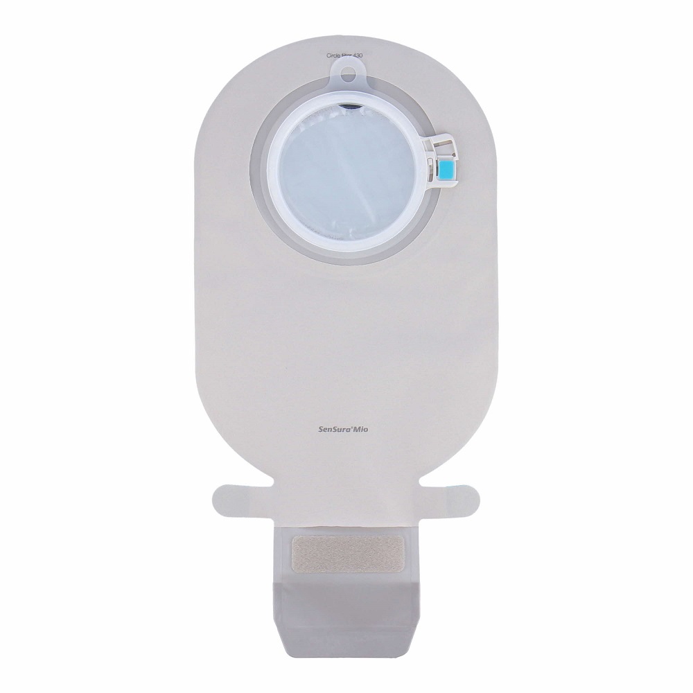 With SenSura Mio Click drainable, the baseplate with the elastic adhesive is separate from the pouch, so the pouch can be changed without changing the baseplate. The pouch is coupled to the baseplate by means of the new Click coupling, which gives an audible “click” when the pouch is securely locked to the baseplate. SenSura Mio Click drainable is available in a broad range of flat baseplates consisting of various pre-cut or hole sizes which can be customized, with pouches in a variety of sizes available in transparent or neutral grey and with coupling systems of 40, 50, 60 or 70 mm in diameter.