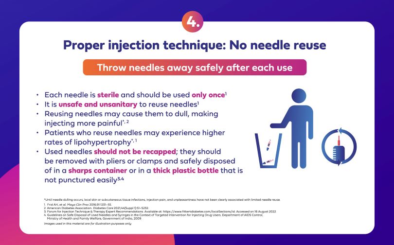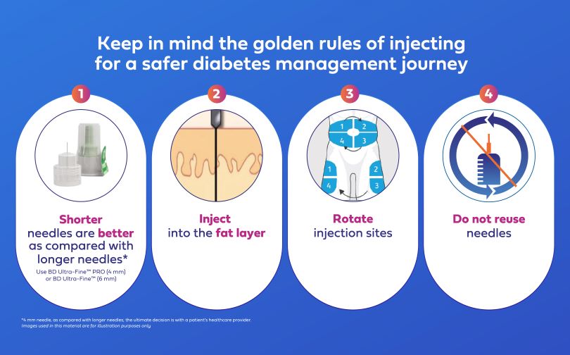 Injection technique plays a crucial role in effective diabetes management. From choosing the right injection site to using proper needle length and rotation practices, these steps make a significant difference in controlling blood glucose level.
