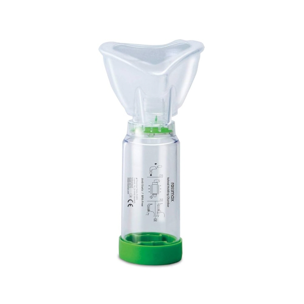 High efficiency one way valve for easy inhalation and exhalation. Universal Backpiece, can be used with all commonly prescribed Metered Dose Inhalers.