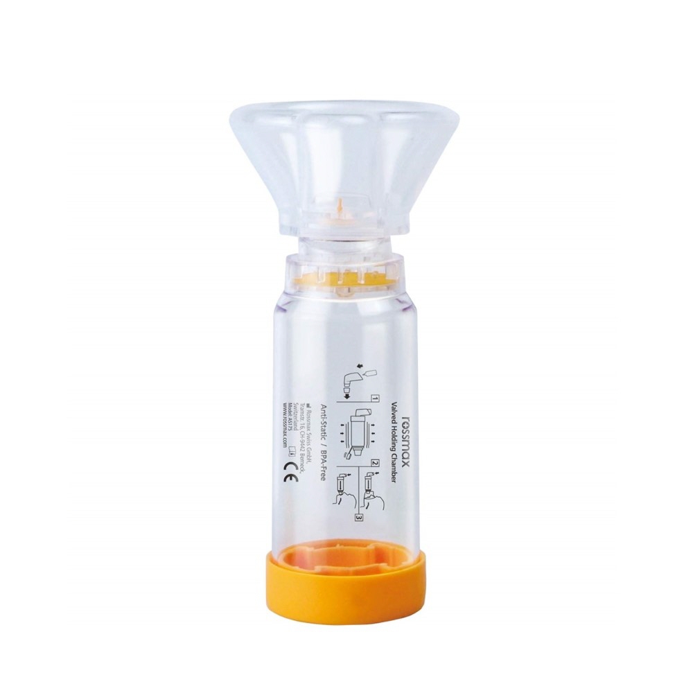 High efficiency one way valve for easy inhalation and exhalation. Universal Backpiece, can be used with all commonly prescribed Metered Dose Inhalers.