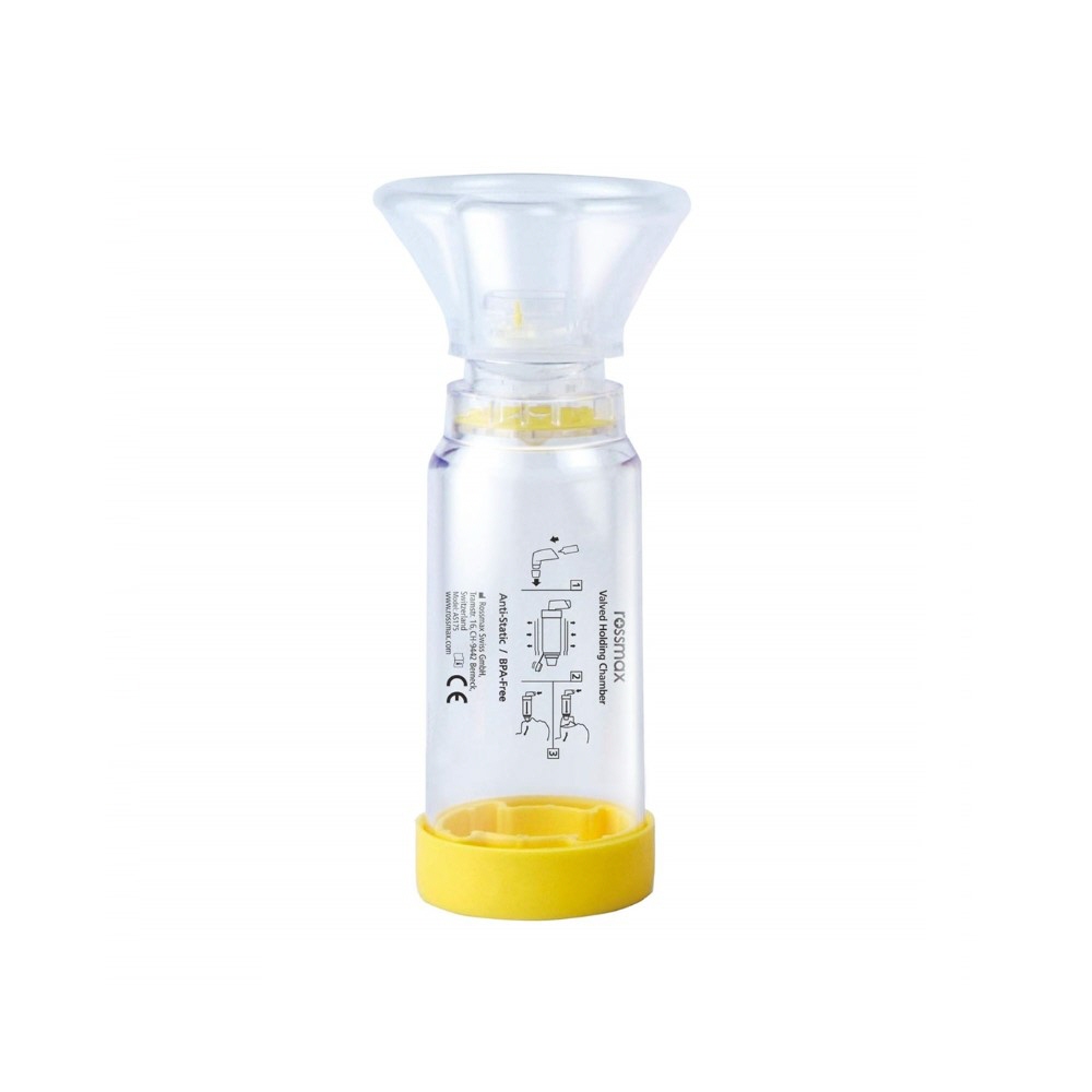 High efficiency one way valve for easy inhalation and exhalation. Universal Backpiece, can be used with all commonly prescribed Metered Dose Inhalers.